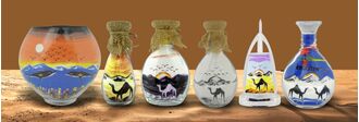 It's amazing to see the art of recreating the desert life inside a small bottle using just sand! Most of our sand bottles feature a camel or a group of camels walking in the desert under the heat...